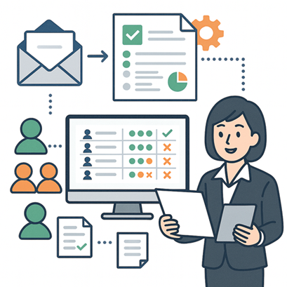 講習会の出欠情報を自動集計し、講習終了後に担当者へメールで通知する" 講習出欠管理の自動化サービス ”です💡
